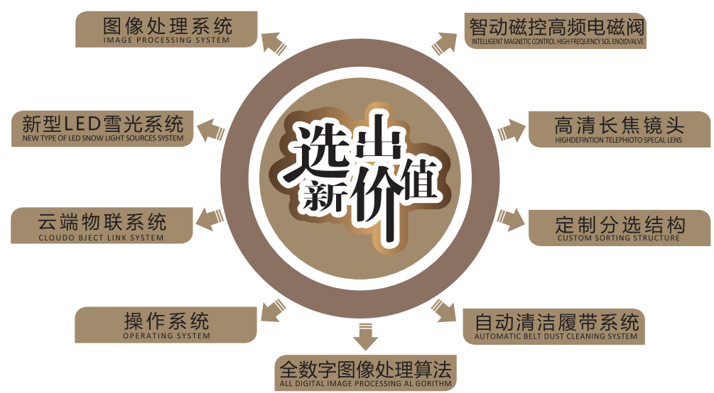 3、高敏感CCD傳感器擁有5340像元和12K掃描速度,配合獨特的掃描方式,讓機器可以選別120目顆粒